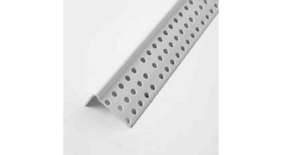 Provides rigid protection for the exposed edges of a wall; which can be nailed or staple applied. Flanges are perforated for positive joint compound bond.